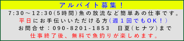 昨日、オープニングセレモニーを開催しました。小さいものでもこの大きさを放流しています。お楽しみに!