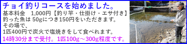 チョイ釣りコース 基本料金1,000円 (レンタル竿・エサ等が含まれます)